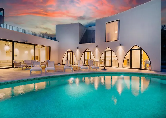 Nice Home In Srima With Outdoor Swimming Pool, Jacuzzi And Wifi tilbyder indkvartering med gratis parkering, en sauna og opvarmet pool og ligger 7 km fra Gospe van Grada-kirken. Bygningen består af 3 værelser og 3 badeværelser.